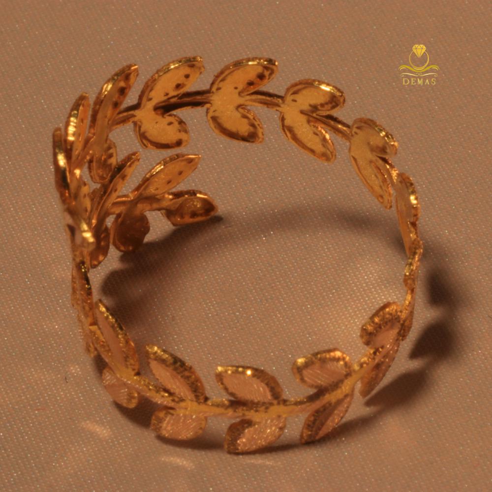 خاتم فاخر مستوحى من الطبيعة بتصميم يجمع بين الرقي والأنوثة، حيث تتداخل أوراق الذهب بشكل فني ليشكل قطعة مليئة بالتفاصيل الساحرة. يأتي بتصميم مفتوح يمنحه لمسة عصرية وانسيابية فاخرة تضيف جمالاً على الأصابع.