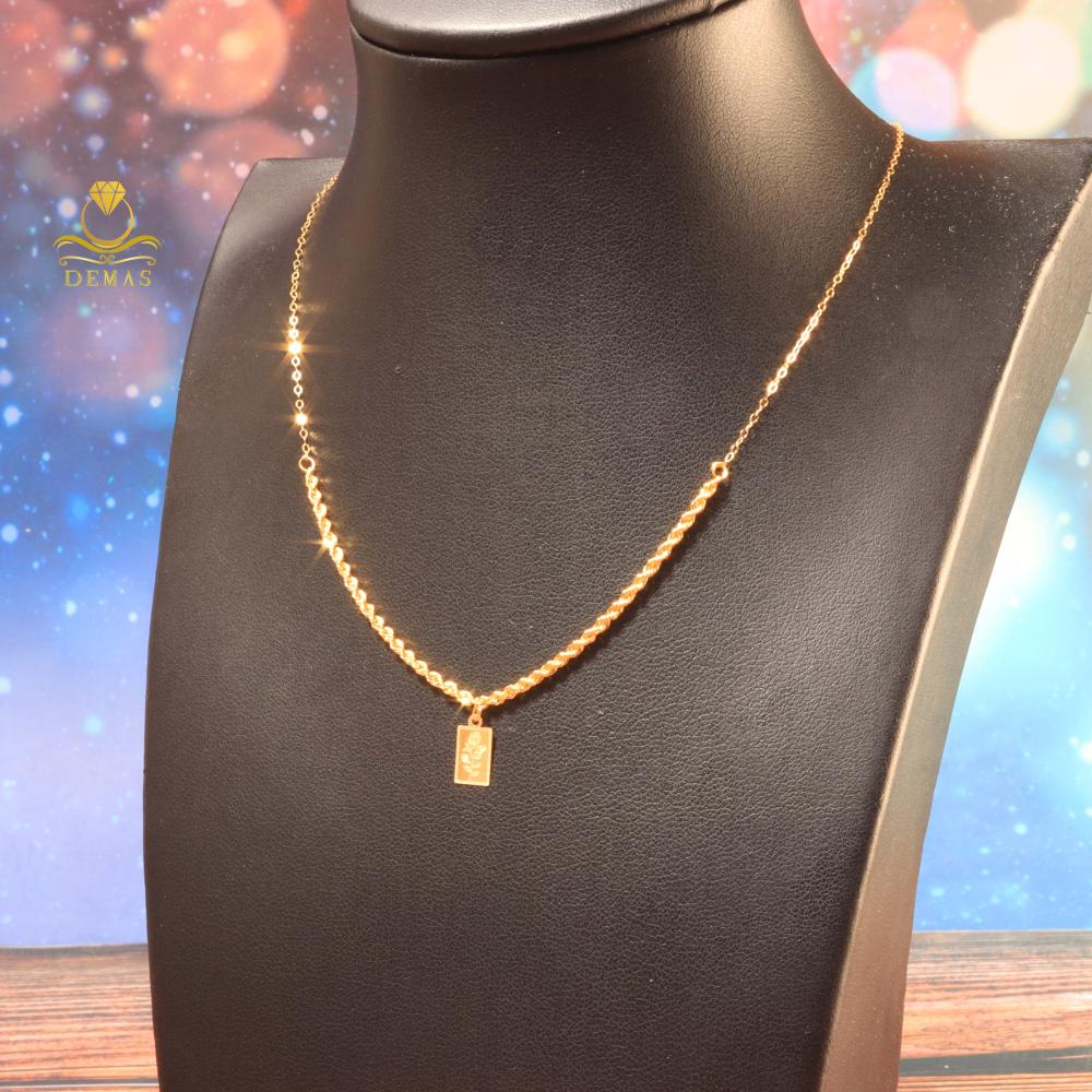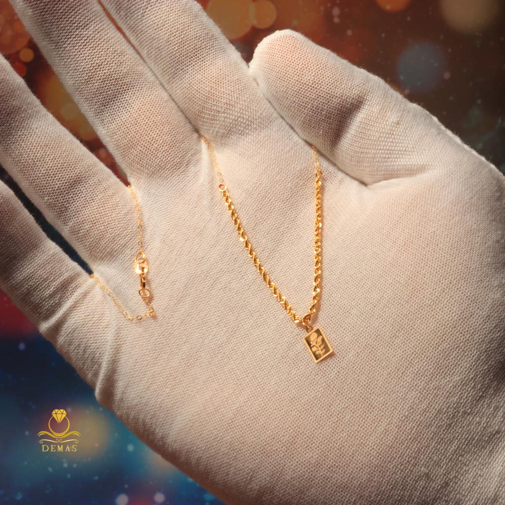A fine chain featuring a rectangular pendant engraved with a graceful floral design — a perfect blend of subtle charm and refined elegance.