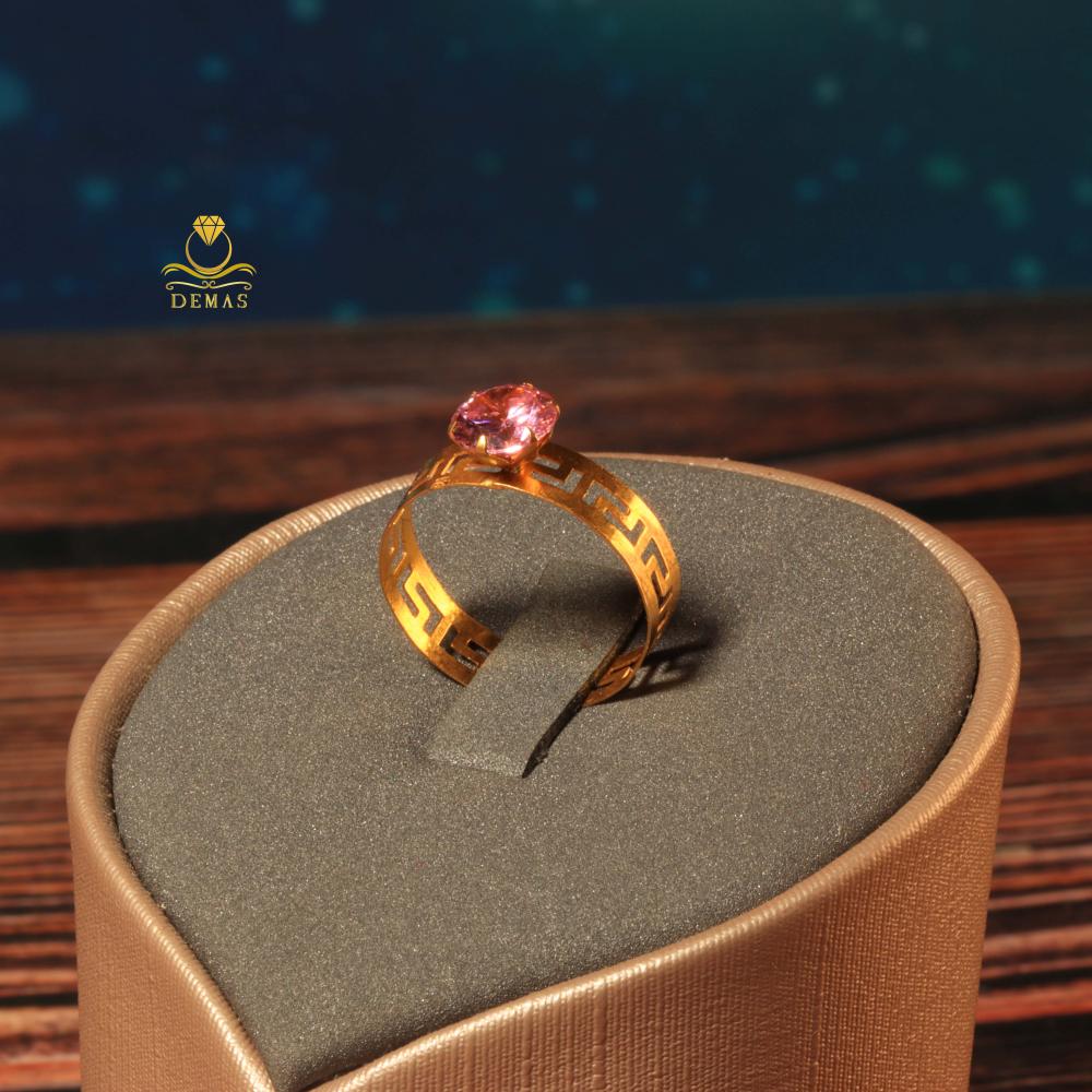 Gold ring fendi with pink stone 18k